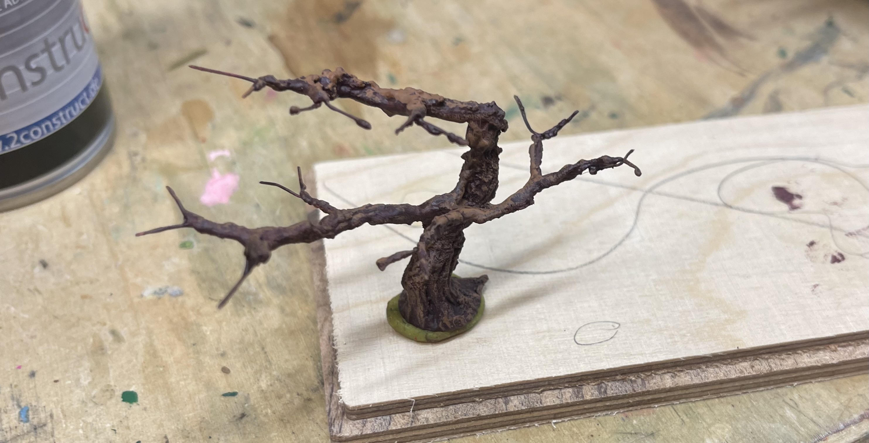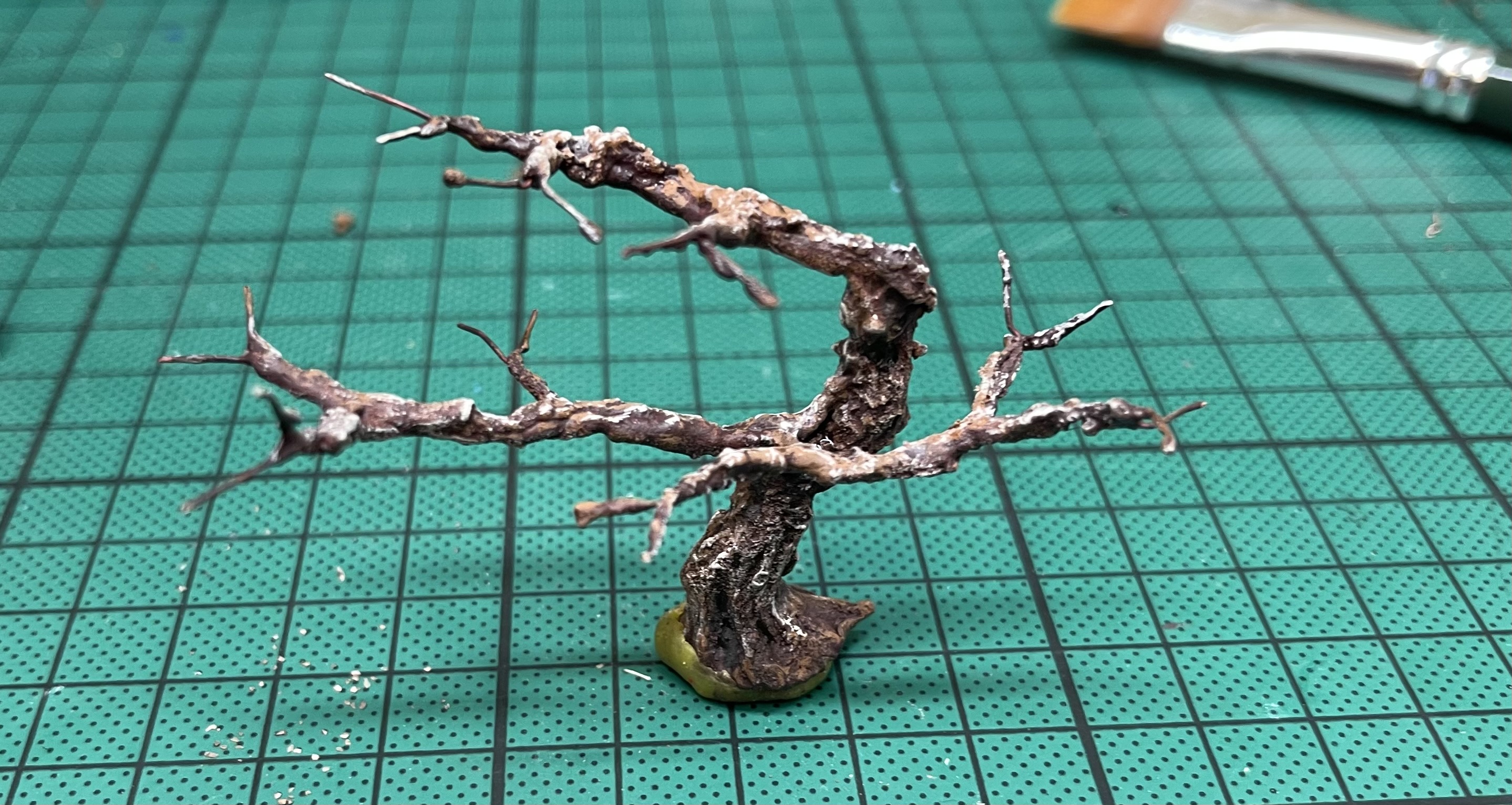 Danach habe ich das Drahtgestell mit einer Modelliermasse bepinselt, um dem Baum etwas mehr Masse zu geben.