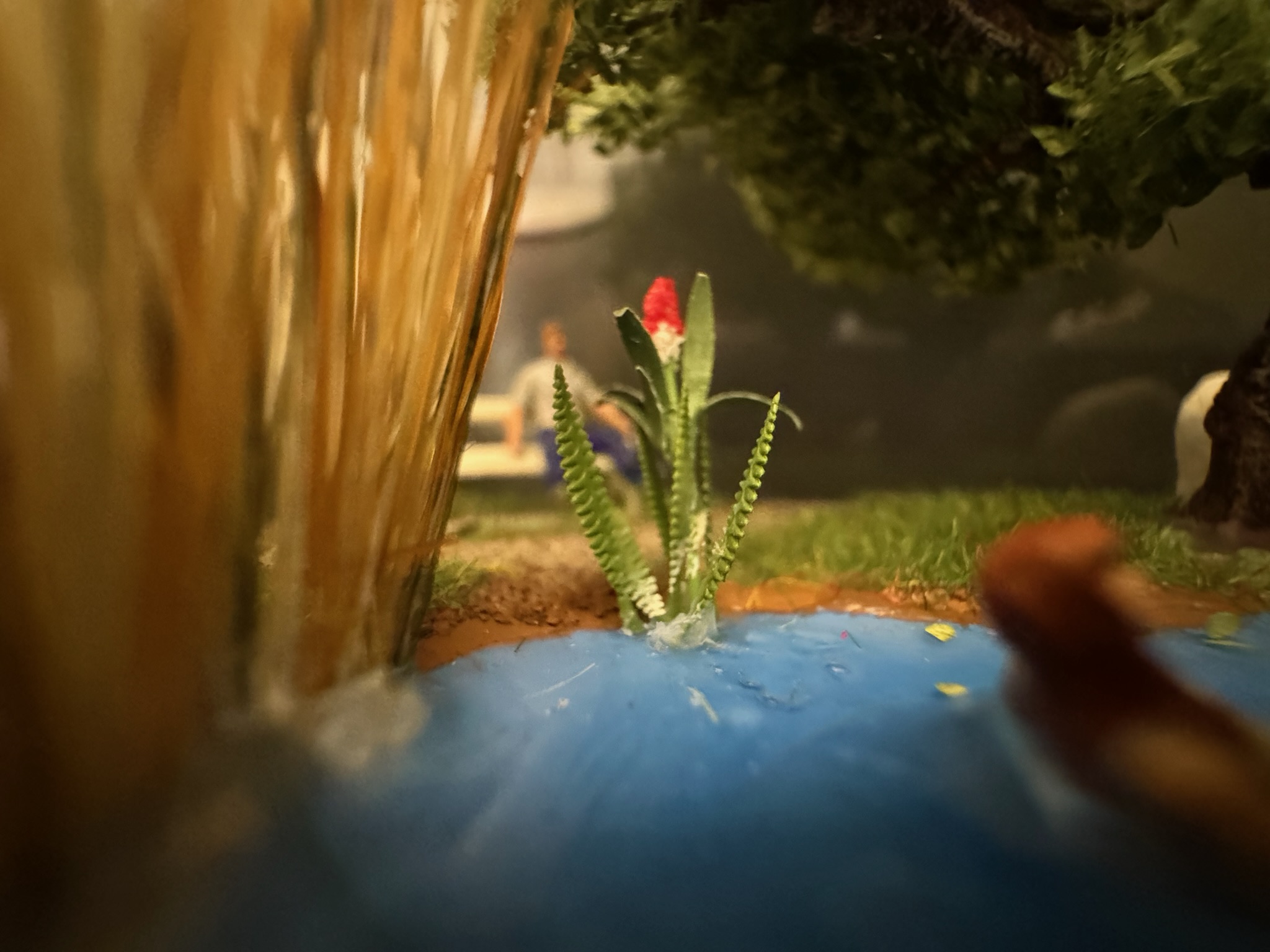 Um das Diorama zu vollenden, habe ich das Schilf zurück geschnitten, die Figuren, die sich nicht im Wasser befinden, angeklebt und den Baum aufgeklebt.