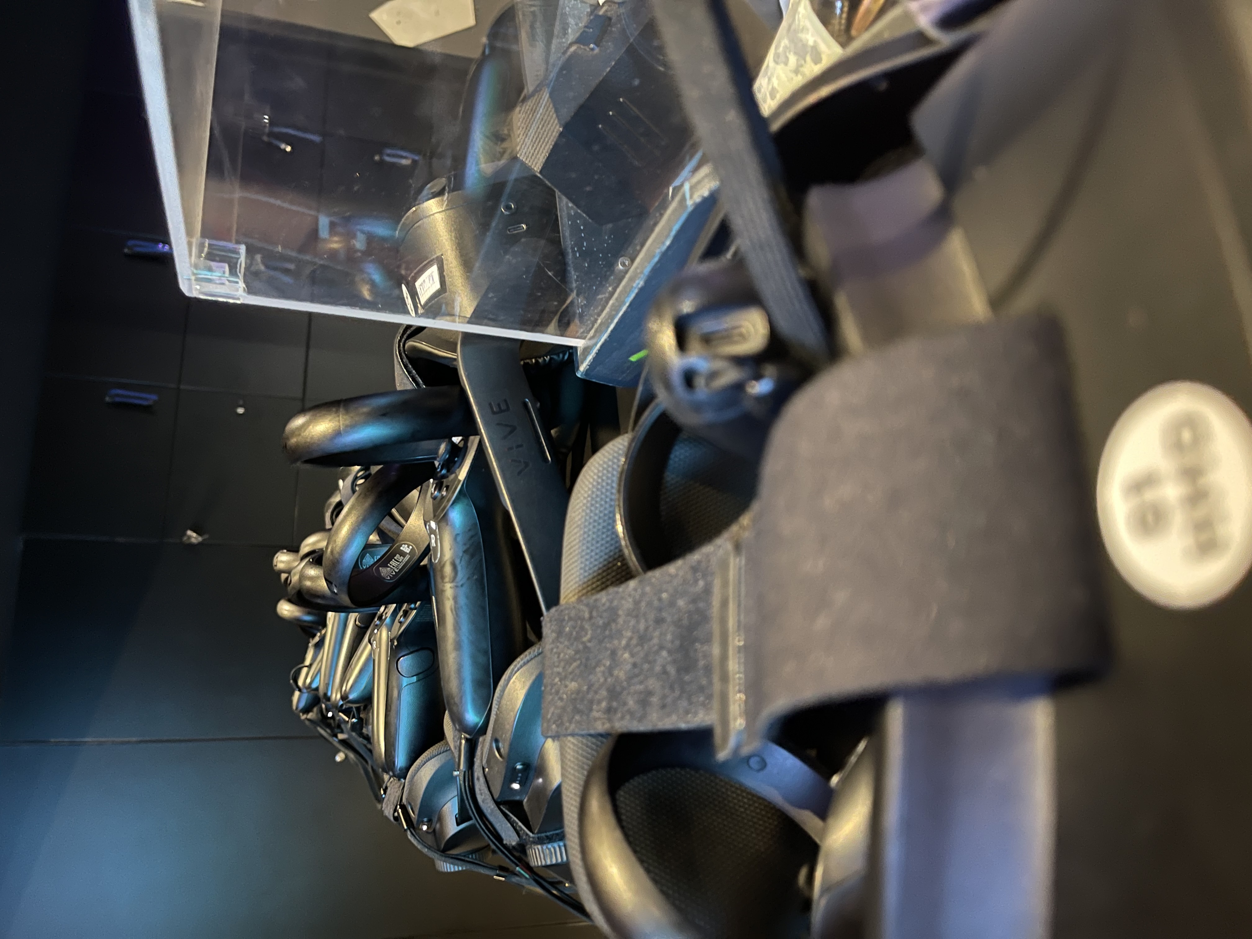 Ich habe damit angefangen, die Sicherheitseinweisung für Yullbe Go zu machen. Mittlerweile könnte ich sie im Schlaf aufsagen. Als erstes Frage ich, ob sie sich das Video über der Tür angeguckt haben. Falls das nicht der Fall sein sollte, bitte ich sie, das noch zu tun. Falls sie schon das Video gesehen haben, fange ich mit der Sicherheitseinweisung an: „Der linke Controller hat keine Funktion und ist nur da, damit die Brille funktioniert. Mit dem rechten Controller können Sie mit manchen Dingen interagieren. Zum Beispiel bekommen Sie am Anfang einen Schlüssel zugeworfen. Um diesen aufzuheben, einfach den rechten Controller durch den Schlüssel bewegen. Um den Schlüssel zu verwenden, einfach den Schlüssel durch das Schloss bewegen. Die Tasten auf den Controllern werden nicht verwendet. Eine Ausname gibt es: gegen Ende bekommen Sie eine Heißklebepistole, mit der sie optional schießen können. Dazu einfach den Knopf hinten auf dem rechten Controller drücken.“ Währenddessen zeige ich die Taste an einem Beispielcontroller. „Wenn Sie nicht mehr weiterwissen, können sie einfach nach unten gucken. Dort sehen Sie Fußstapfen, die Ihnen den Weg zeigen. Im Falle, das dass nicht hilft, können Sie auch die Brille abnehmen und dem Personal im Raum signalisieren, dass Sie Hilfe brauchen. Falls Ihnen schlecht wird, Sie keine Lust mehr haben oder irgendetwas anderes, einfach Brille abnehmen und dem Personal sagen, was los ist. Sie sind zu nichts verpflichtet und können jederzeit abbrechen. Rote Wände oder Personen sind echt, deswegen nicht dagegen laufen, weil die sind echt. Nicht springen, rennen oder zu lange in die Hocke gehen, da Sie, wenn Sie in die Hocke gehen, auch für andere Spieler kleiner werden und übersehen werden können. Jetzt können Sie einmal nach vorne kommen, dann gebe ich Ihnen das Headset und dann können Sie los.“ Dann ziehe ich den Kunden die Handschlaufen der Controller an, gebe ihnen das Headset und schicke sie in den Raum zum nächsten Kollegen. Und das habe ich für jede Gruppe an Kunden wiederholt.