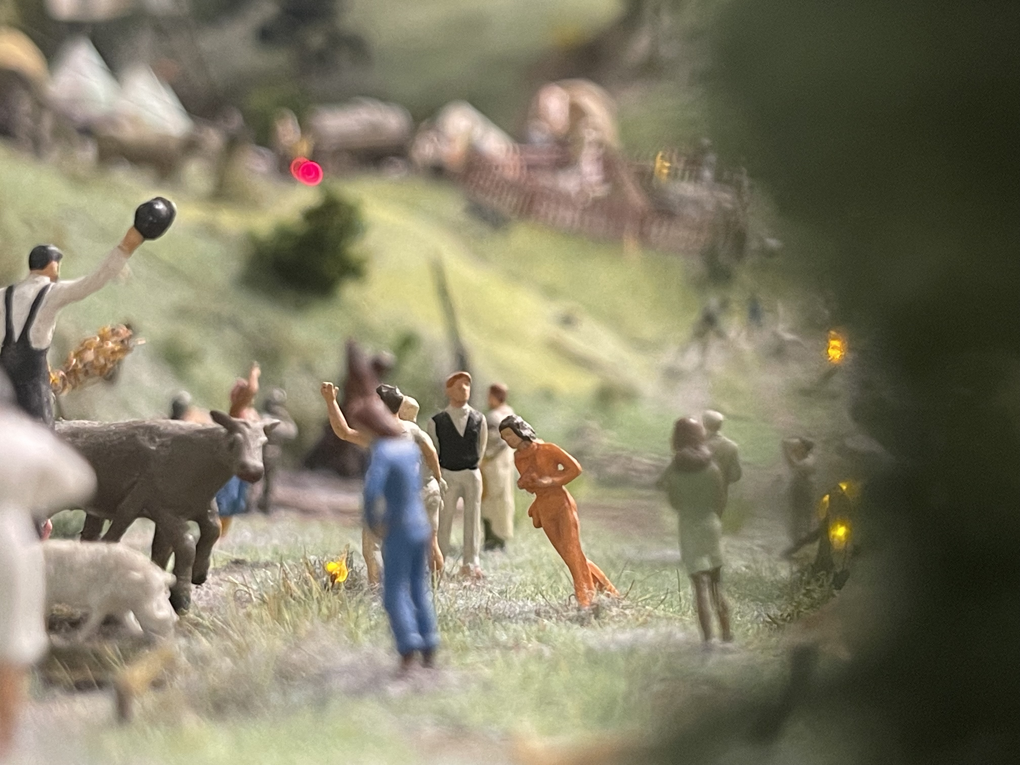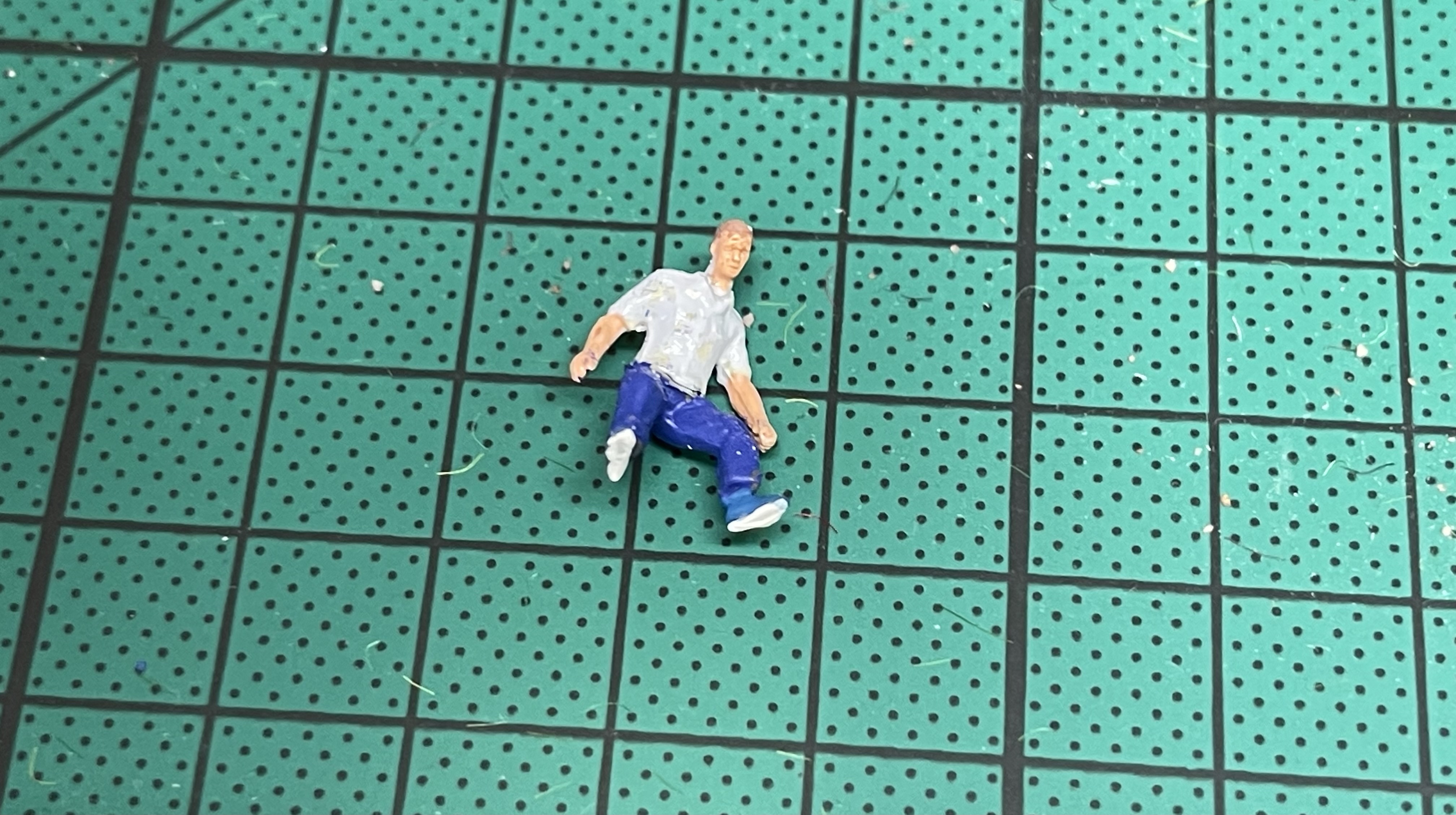 Zudem habe ich versucht, mich selbst aus verschiedenen Preiser-Figuren (Preiser ist die die Marke) zusammen zu bauen. Dazu musste ich die Figuren zerschneiden, bemalen und wieder zusammen kleben.