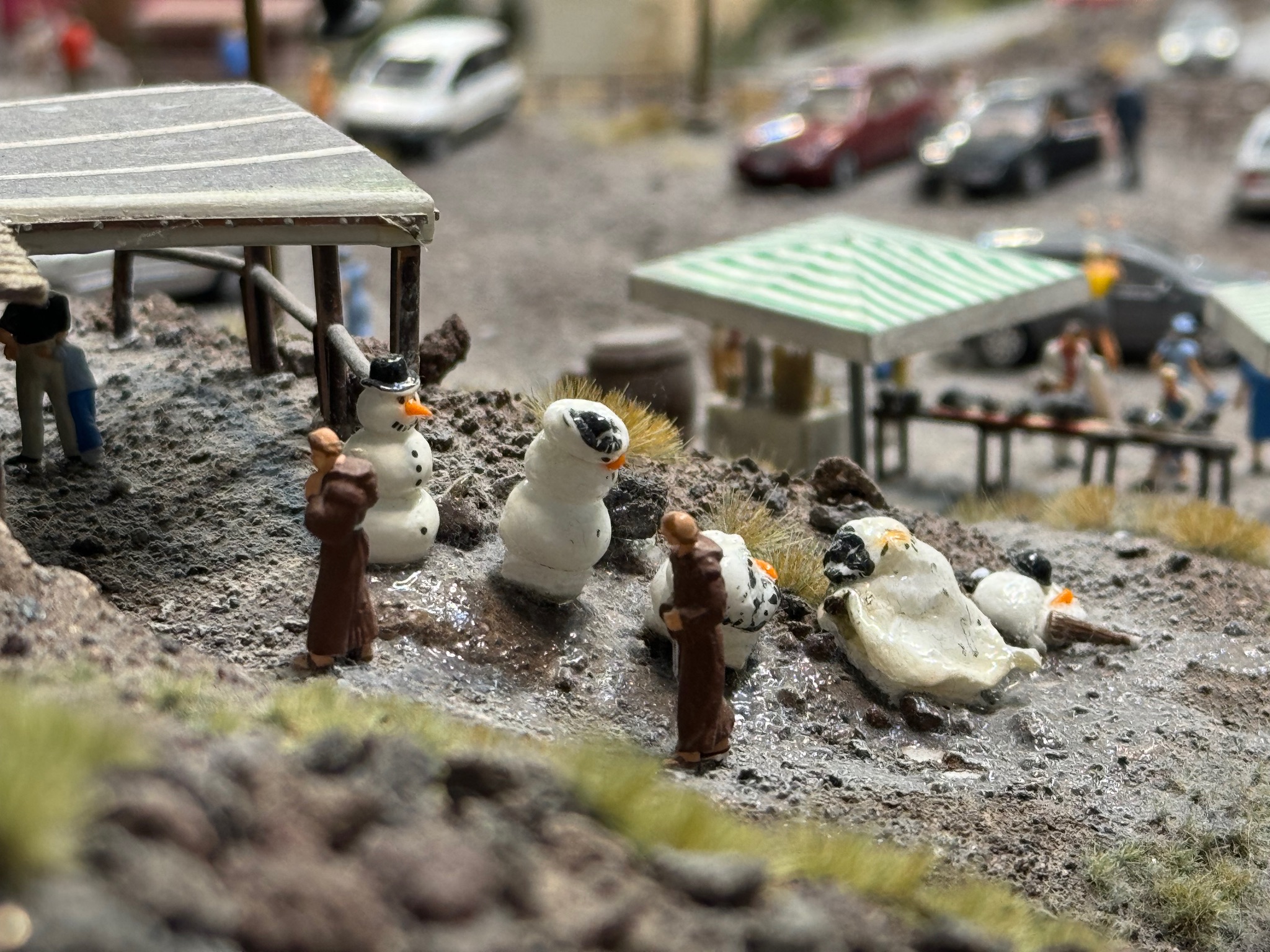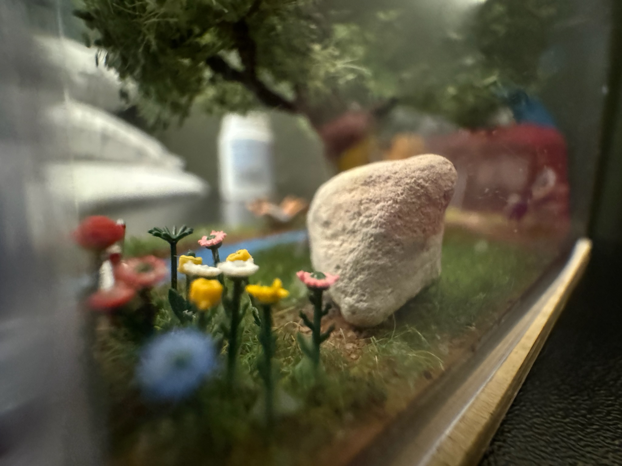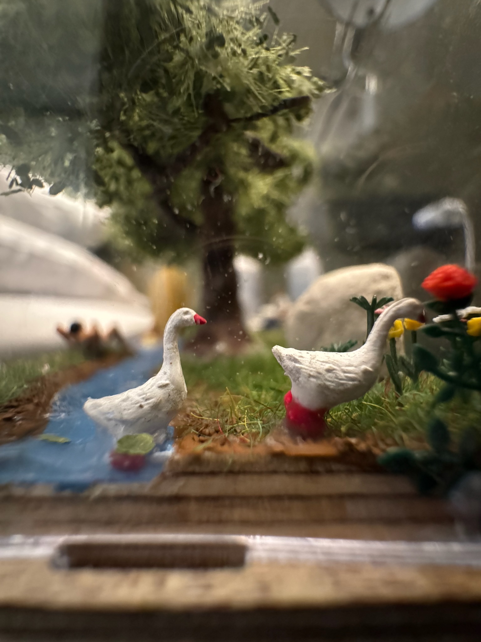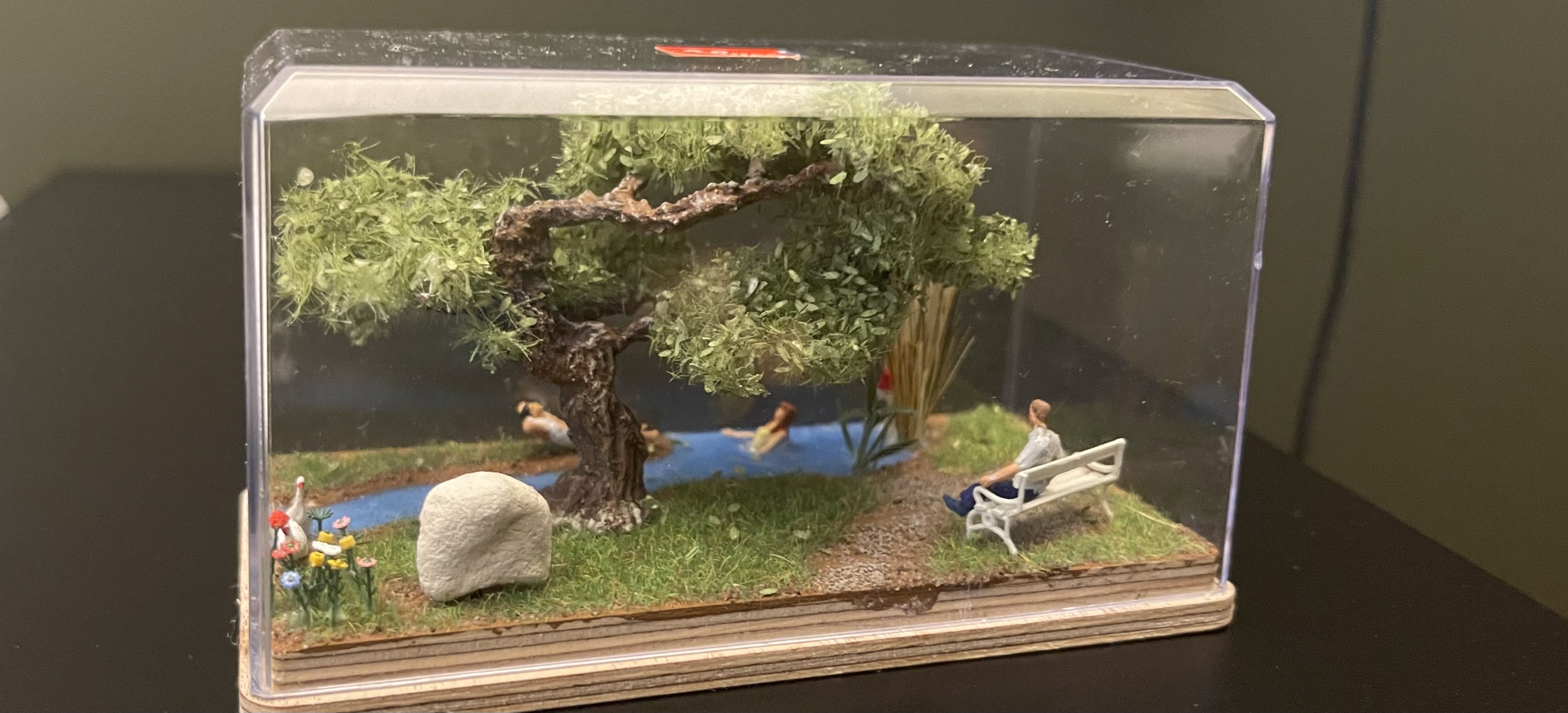 Um das Diorama zu vollenden, habe ich das Schilf zurück geschnitten, die Figuren, die sich nicht im Wasser befinden, angeklebt und den Baum aufgeklebt.